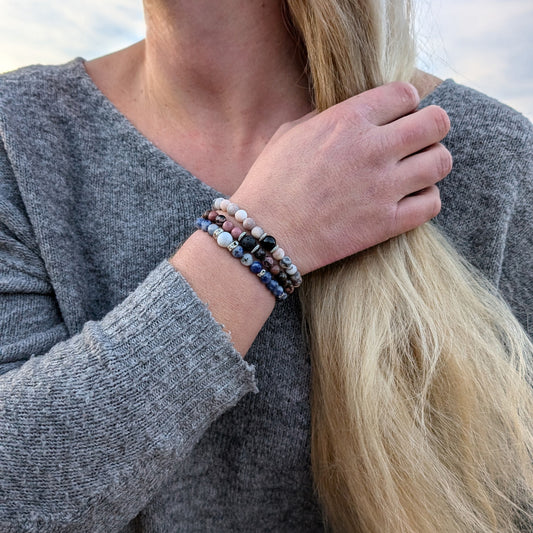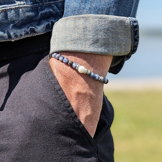 Armband i Blue Vein Sodalite och Opal med Detaljer av Metall