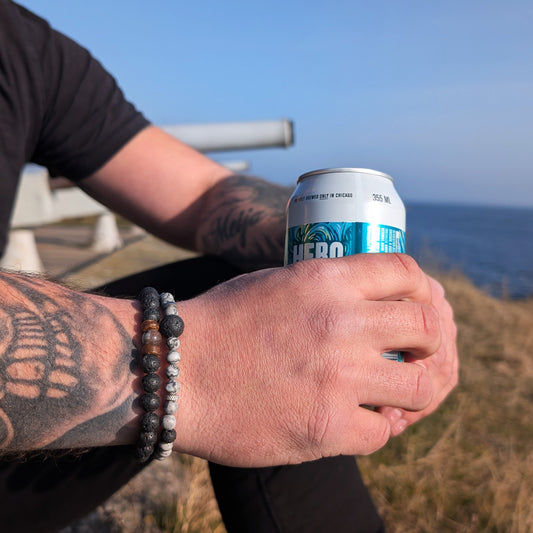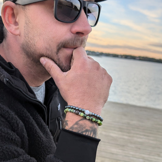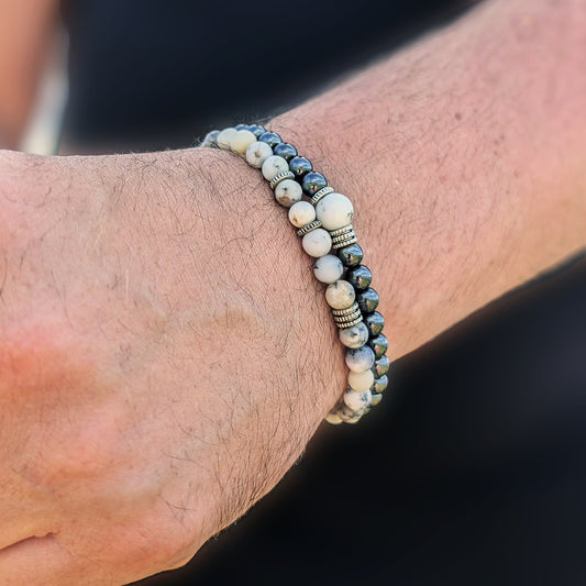 Armband i Zebra Jasper och Obsidian med Detaljer av Metall