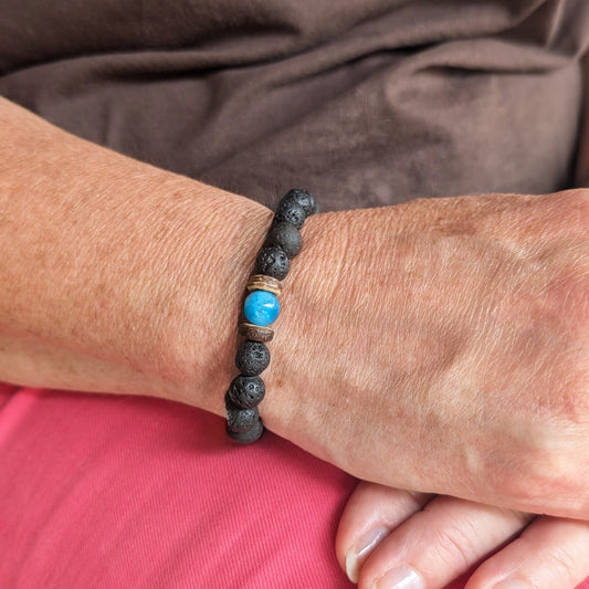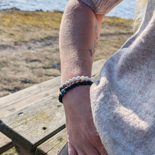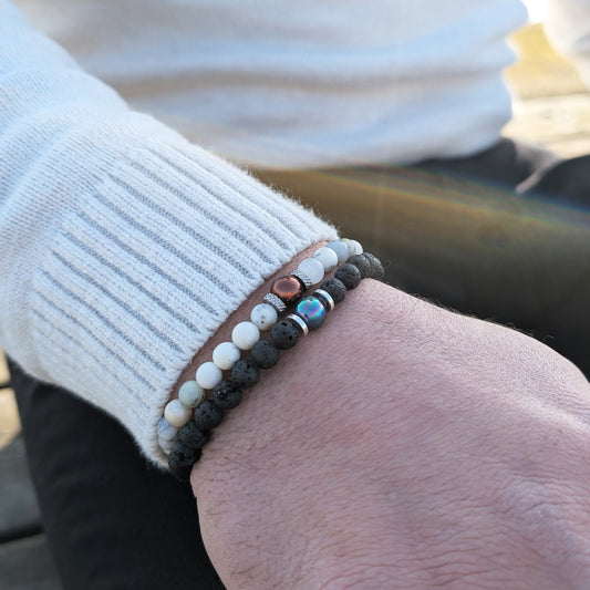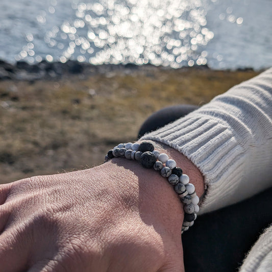 Armband i Turquoise och Lavasten, Vit Grå Metall