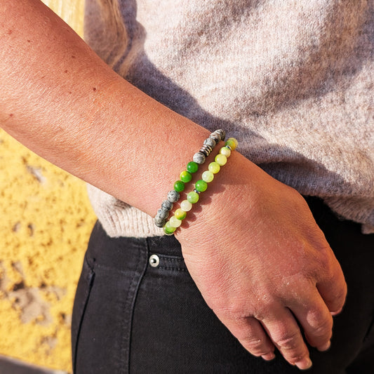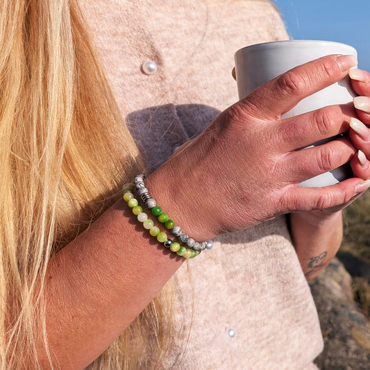 Armband i Picasso och Persisk Jade med inslag av Metall, Grå Grön Metall
