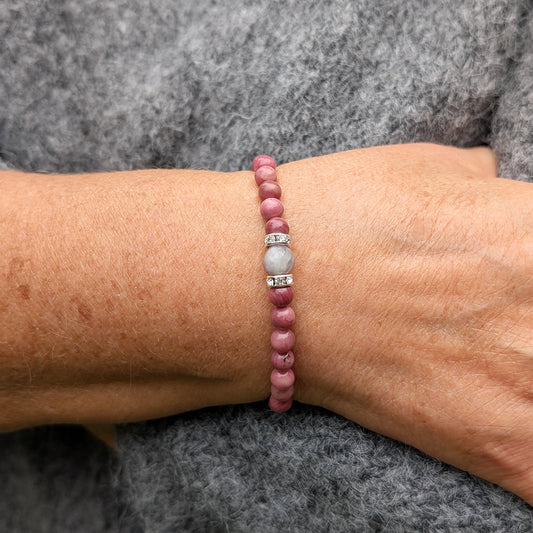 Armband i Pink Rhodonite och Tourmaline med Detaljer av Metall