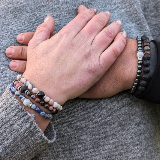 Armband i Black Line Rhodonite och Lava med Detaljer av Metall
